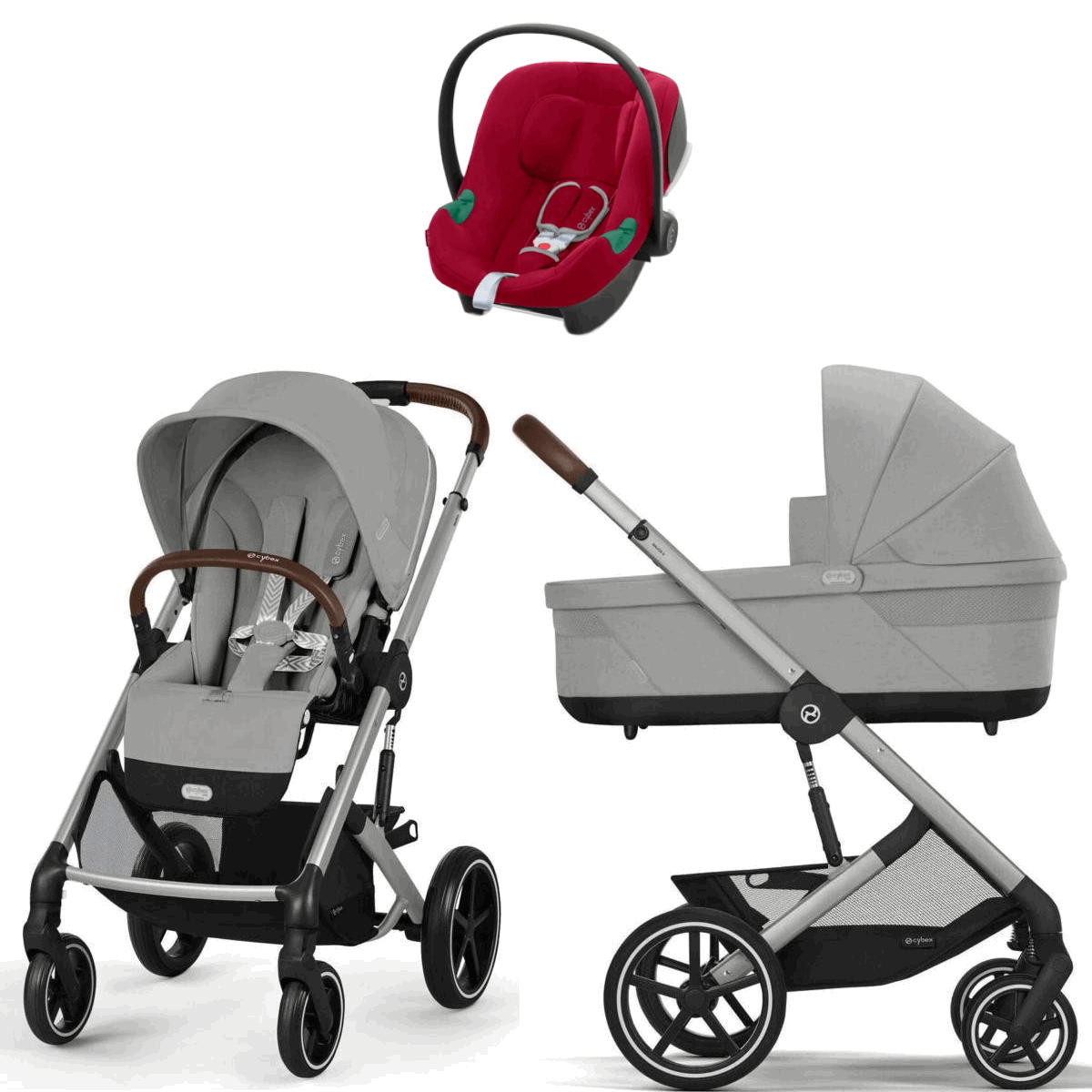 Коляска Cybex Balios S Lux SLV complete Aton B2 Dynamic Red 3 в 1 Stone Grey с дождевиками