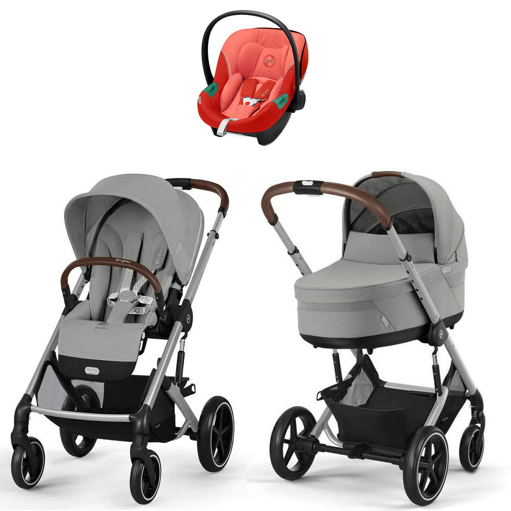 Коляска Cybex Balios S Lux SLV complete Aton S2 Hibiscus Red Base One 4 в 1 Stone Grey с дождевиками