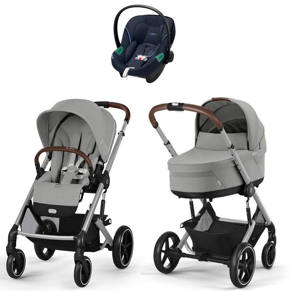 Коляска Cybex Balios S Lux SLV complete Aton S2 Ocean Blue Base One 4 в 1 Stone Grey с дождевиками