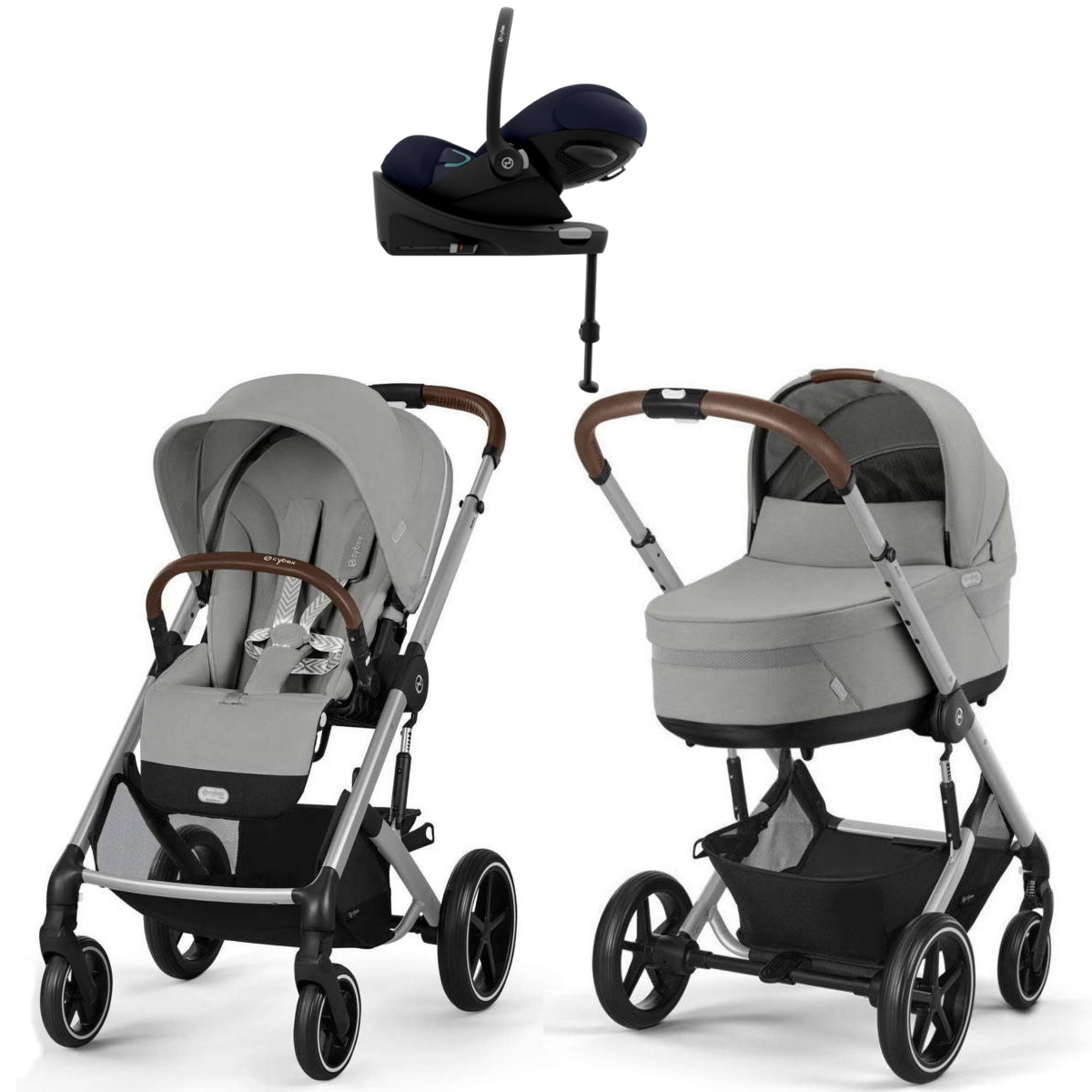 В комплекте: прогулочная коляска Balios S Lux, люлька Cot S Lux, автокресло Cybex Cloud G i-Size с базой Isofix Base G, адаптер для установки на шасси автокресла.