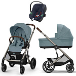 Коляска Cybex Balios S Lux TPE complete Aton B2 Bay Blue Base One 4 в 1 Stormy Blue с дождевиками