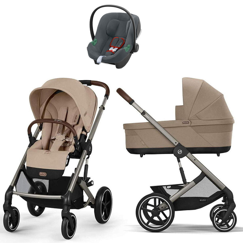 В комплекте: прогулочная коляска Balios S Lux, люлька Cot S Lux, автокресло Cybex Aton B2 i-Size с базой Isofix Base One, адаптер для установки на шасси автокресла.