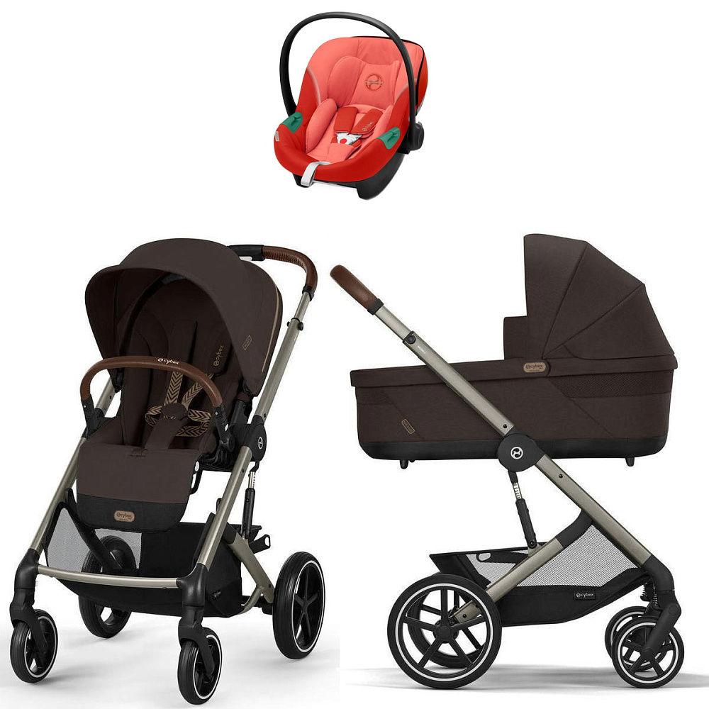 Коляска Cybex Balios S Lux TPE complete Aton S2 Hibiscus Red Base One 4 в 1 Chocolate Brown с дождевиками