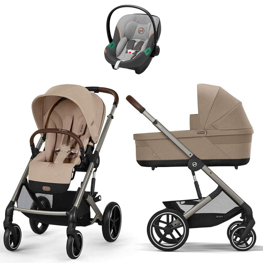 Коляска Cybex Balios S Lux TPE complete Aton S2 Lava Grey Base One 4 в 1 Almond Beige с дождевиками