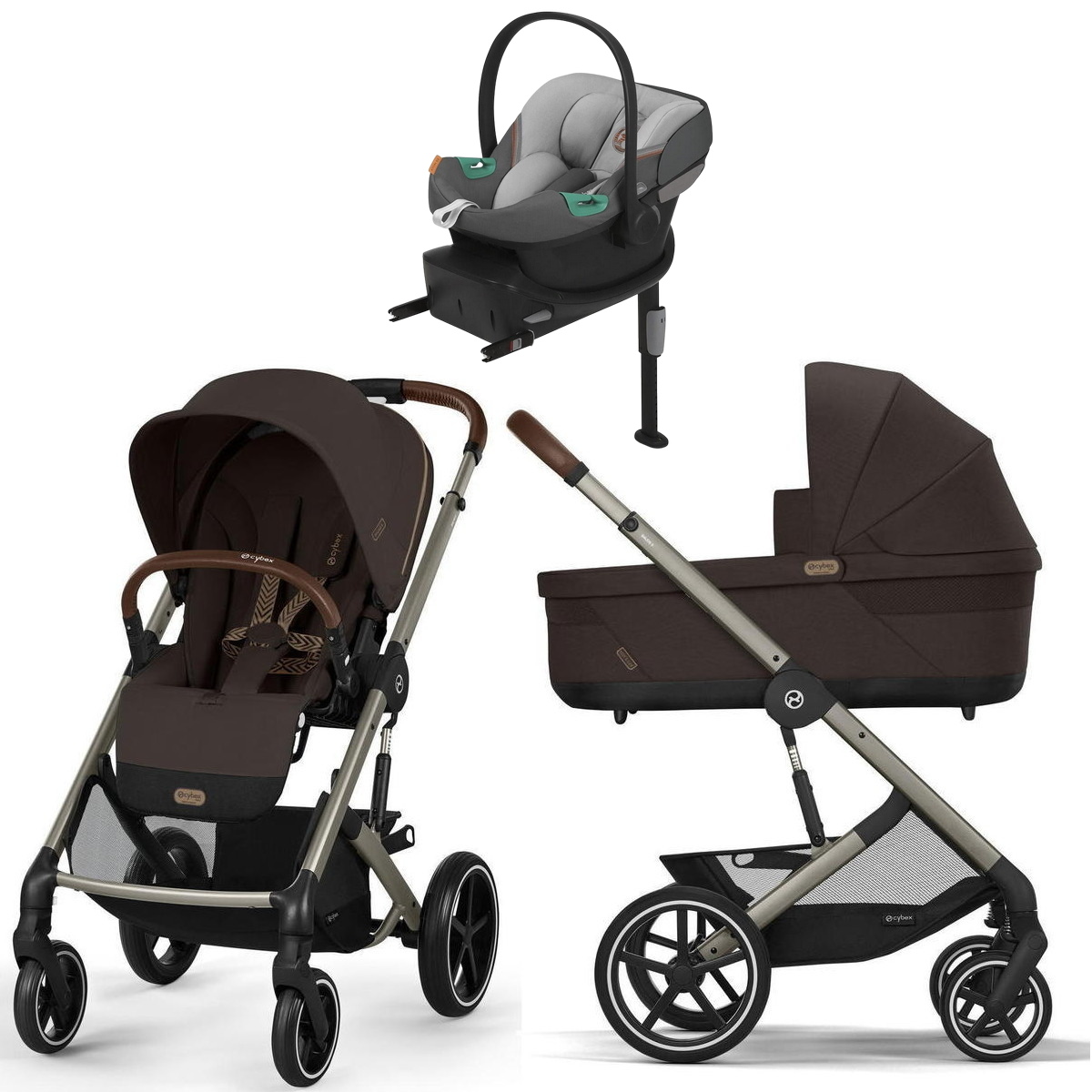 Коляска Cybex Balios S Lux TPE complete Aton S2 Lava Grey Base One 4 в 1 Chocolate Brown с дождевикамиНет оценокХарактеристики