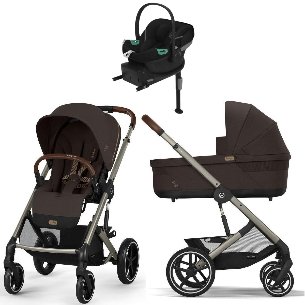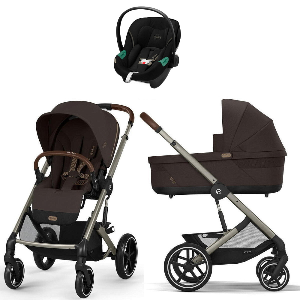Коляска Cybex Balios S Lux TPE complete Aton S2 Moon Black Base One 4 в 1 Chocolate Brown с дождевиками
