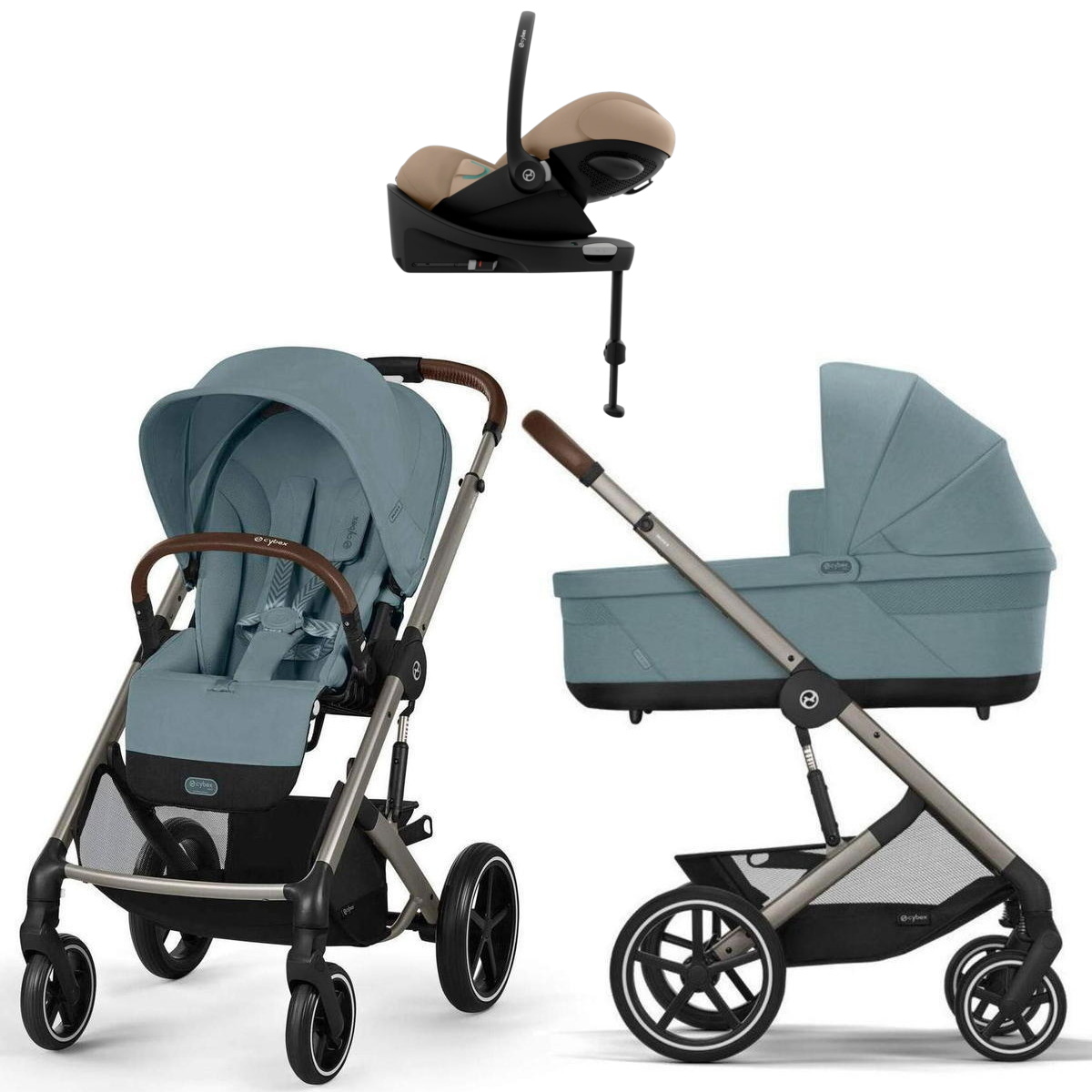 Коляска Cybex Balios S Lux TPE complete Cloud G Almond Beige Plus Base G 4 в 1 Stormy Blue с дождевиками