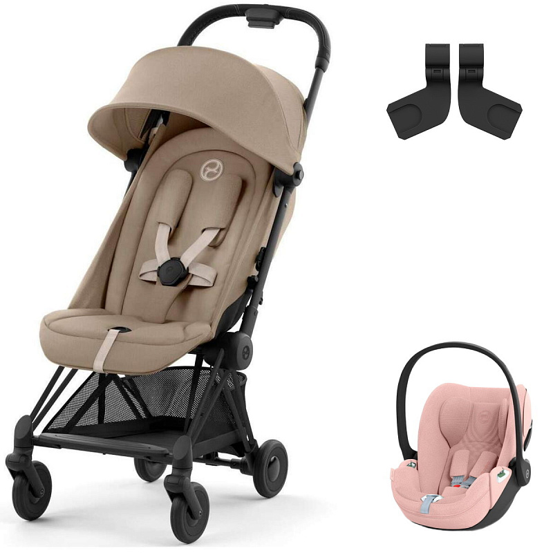 Коляска Cybex Coya Matt Black Frame Cloud T i-Size Peach Pink Plus 2 в 1 Cozy Beige с дождевиком и бампером
