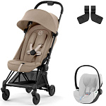 Коляска Cybex Coya Matt Black Frame Cloud T i-Size Platinum White Plus 2 в 1 Cozy Beige с дождевиком и бампером