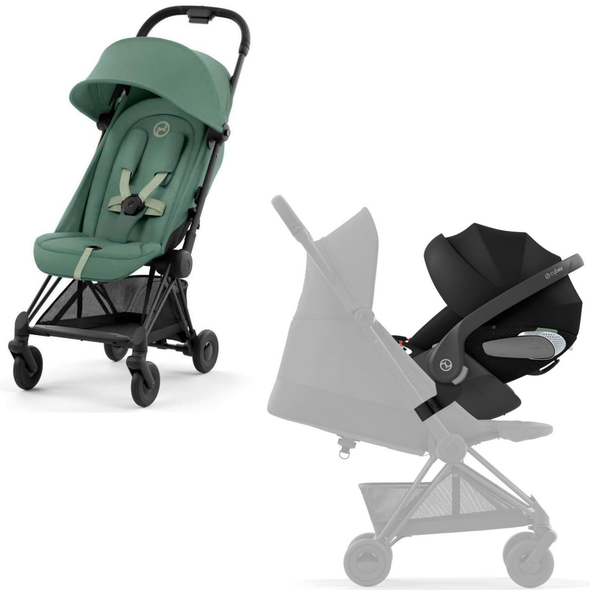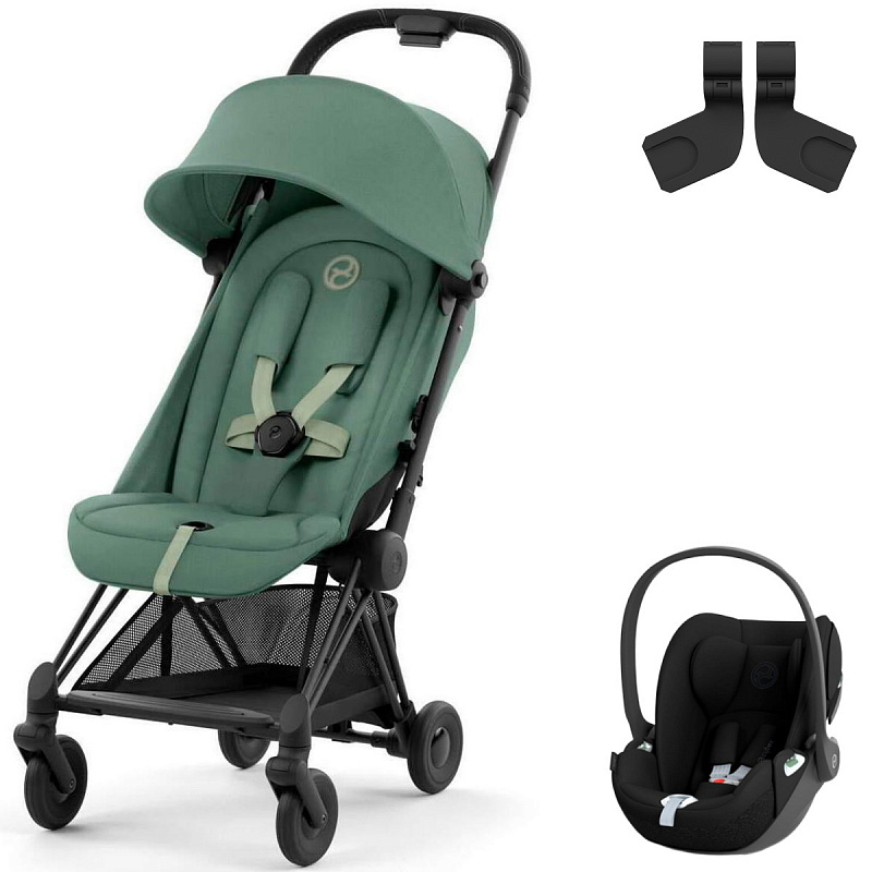 Коляска Cybex Coya Matt Black Frame Cloud T i-Size Sepia Black Leaf Green с дождевиком и бампером