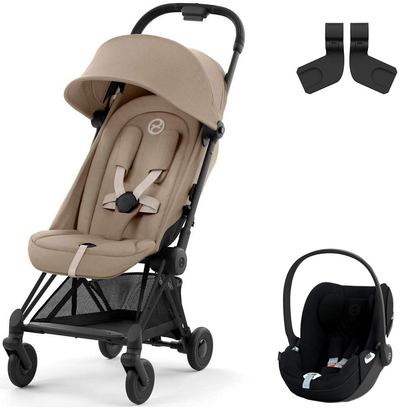 Коляска Cybex Coya Matt Black Frame Cloud T i-Size Sepia Black Plus Cozy Beige с дождевиком и бампером