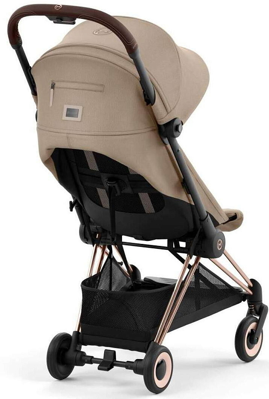 Коляска Cybex Coya Rosegold Frame Cloud G i-Size Fog Grey Cozy Beige с дождевиком и бампером