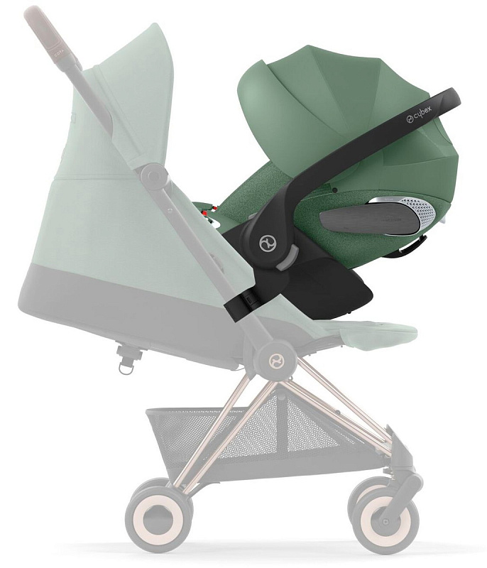 Коляска Cybex Coya Rosegold Frame Cloud T i-Size Leaf Green Plus Off White с дождевиком и бампером