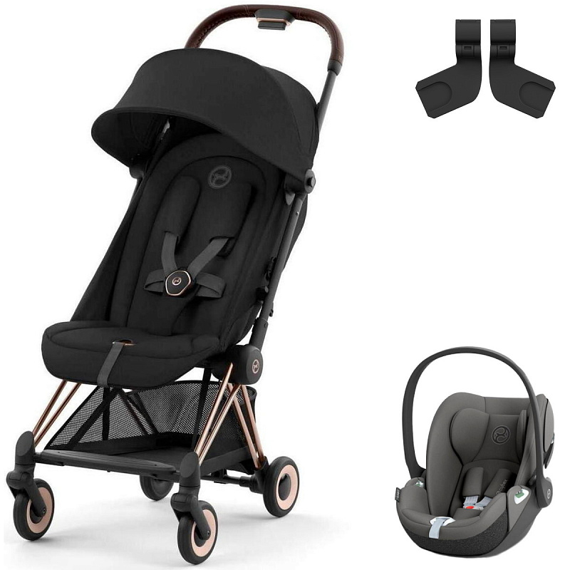 Коляска Cybex Coya Rosegold Frame Cloud T i-Size Mirage Grey 2 в 1 Sepia Black с дождевиком и бампером