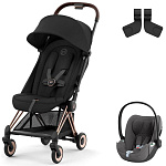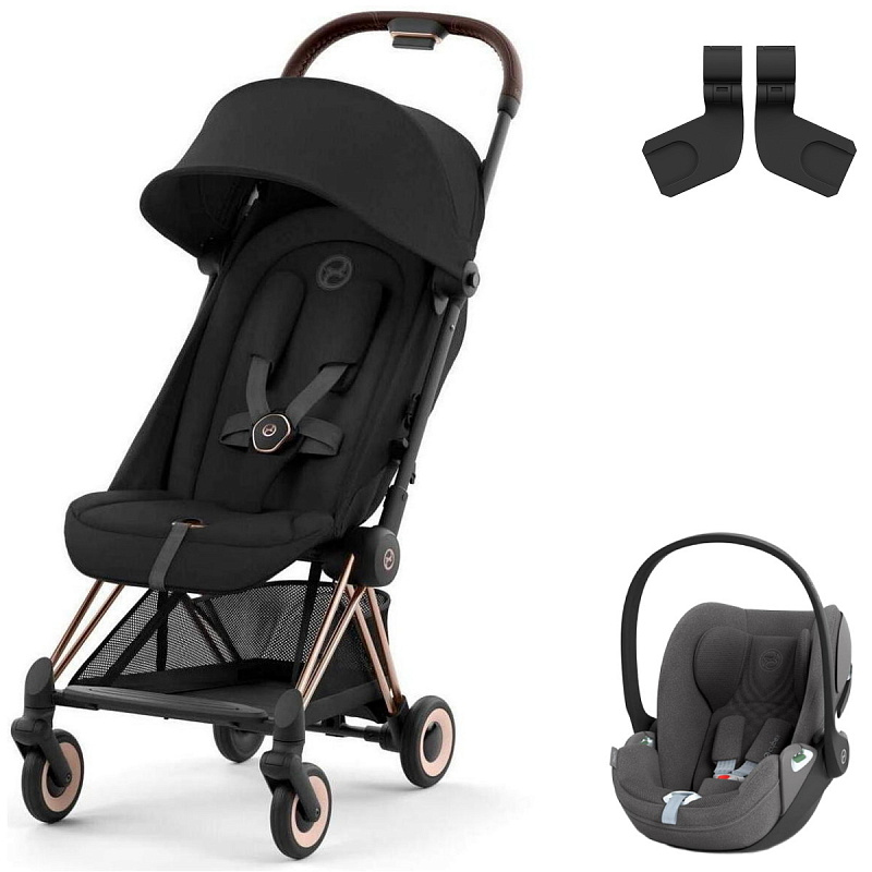 Коляска Cybex Coya Rosegold Frame Cloud T i-Size Mirage Grey Plus Sepia Black с дождевиком и бампером