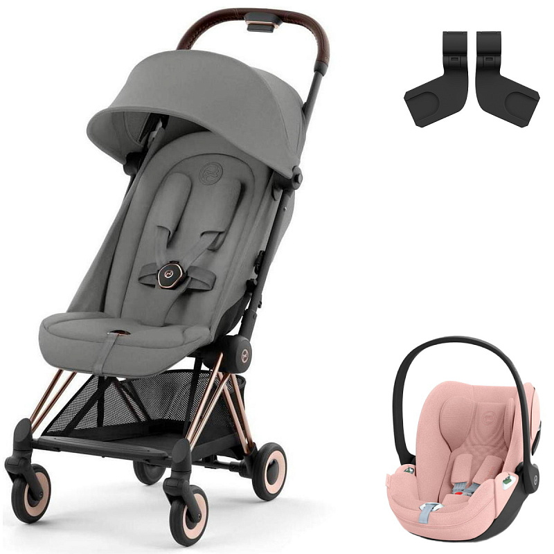 Коляска Cybex Coya Rosegold Frame Cloud T i-Size Peach Pink Plus Mirage Grey с дождевиком и бампером
