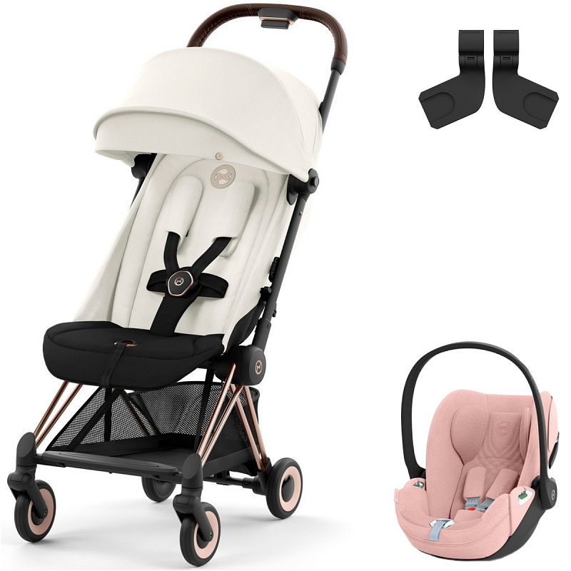 Коляска Cybex Coya Rosegold Frame Cloud T i-Size Peach Pink Plus Off White с дождевиком и бампером