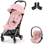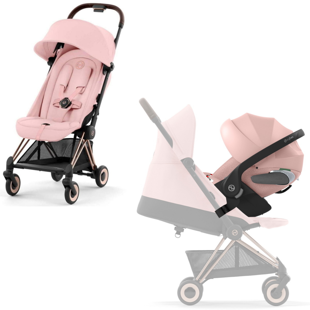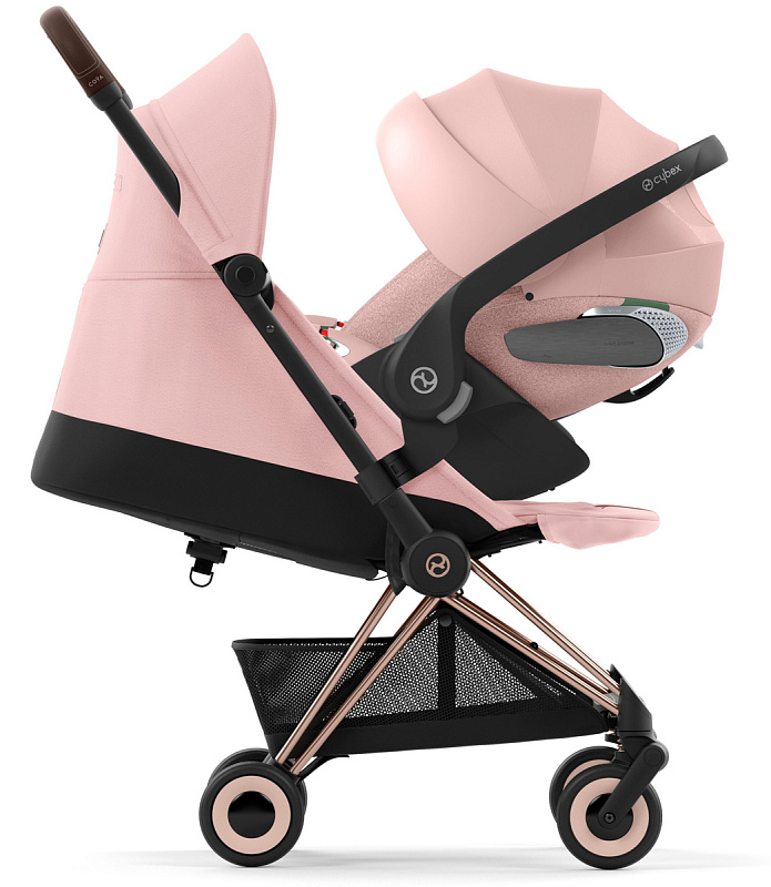 Коляска Cybex Coya Rosegold Frame Cloud T i-Size Peach Pink Plus Peach Pink с дождевиком и бампером