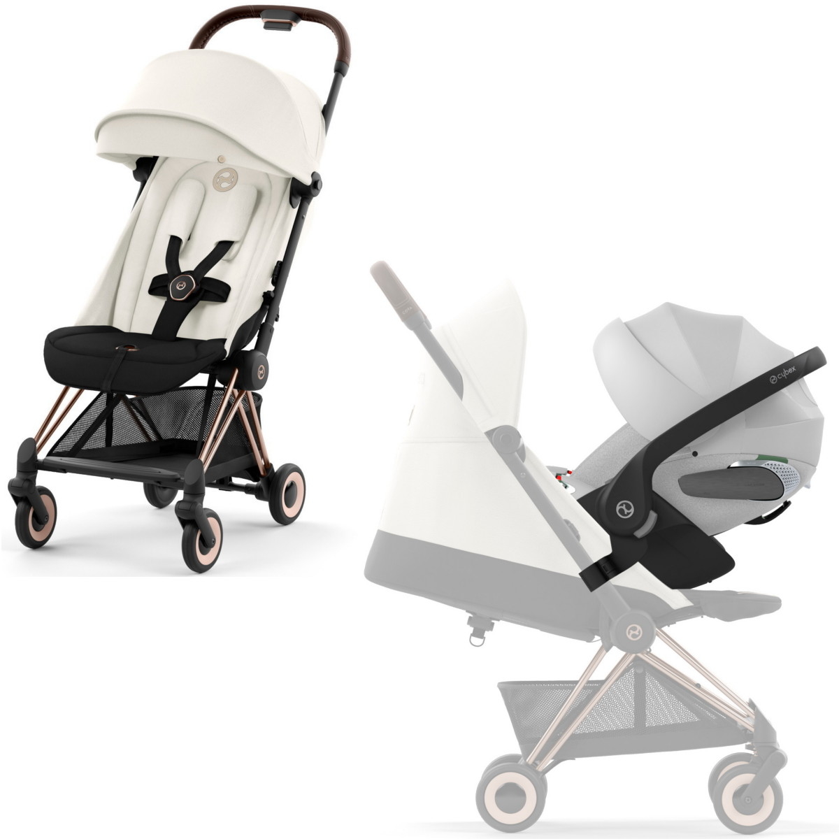 Коляска Cybex Coya Rosegold Frame Cloud T i-Size Platinum White Plus 2 в 1 Off White с дождевиком и бампером