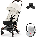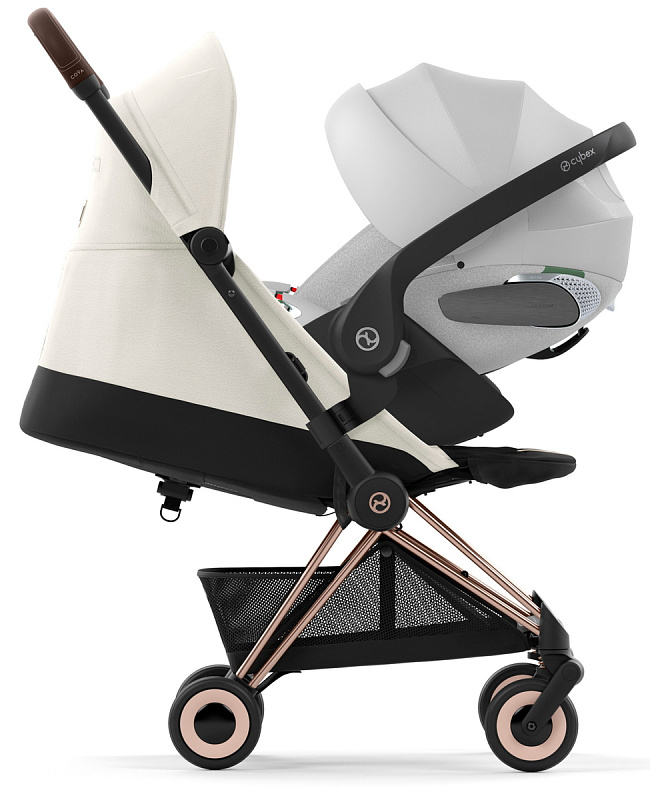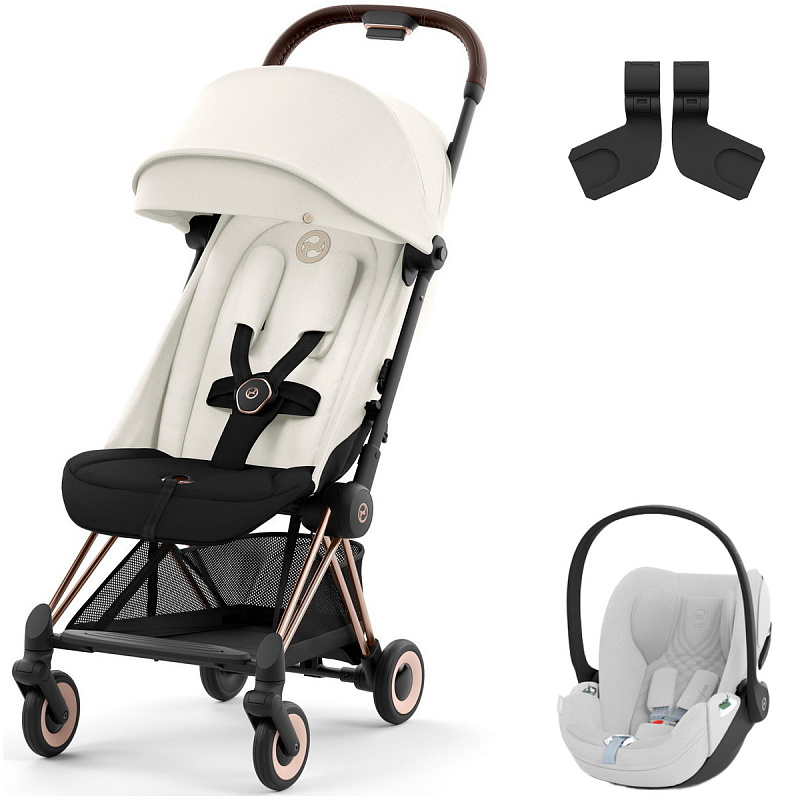 Коляска Cybex Coya Rosegold Frame Cloud T i-Size Platinum White Plus Off White с дождевиком и бампером