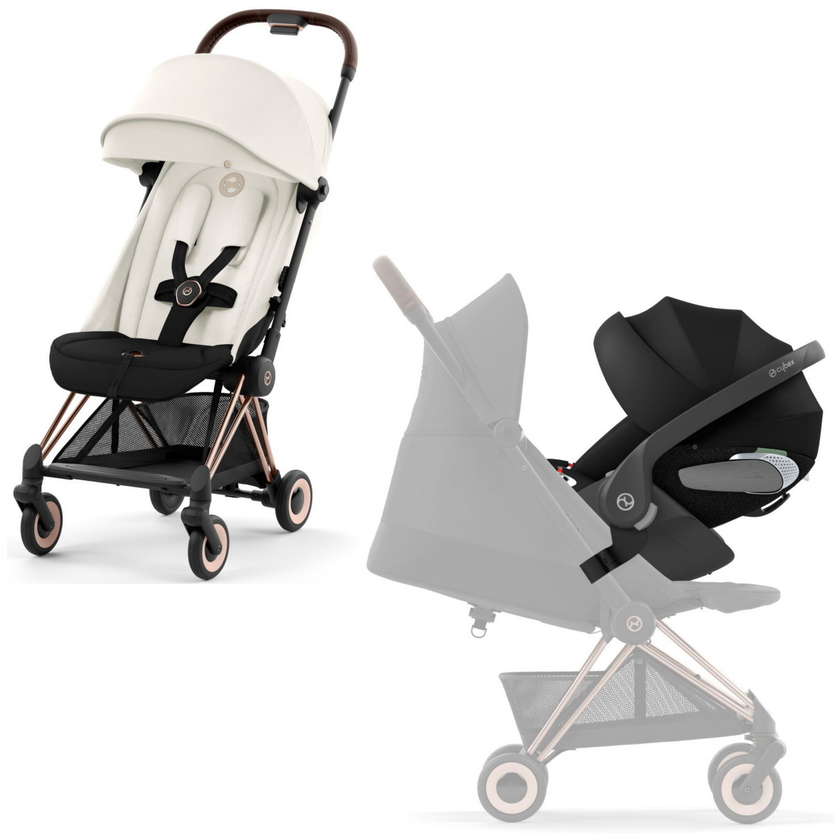 Коляска Cybex Coya Rosegold Frame Cloud T i-Size Sepia Black Off White с дождевиком и бампером