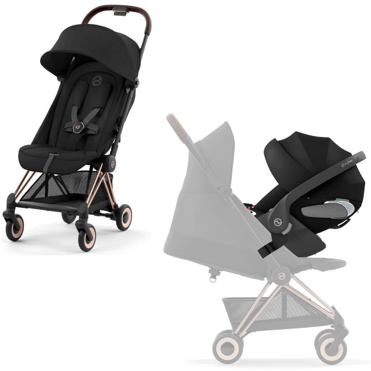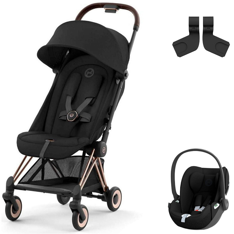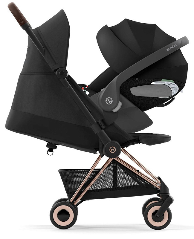 Коляска Cybex Coya Rosegold Frame Cloud T i-Size Sepia Black Sepia Black с дождевиком и бампером