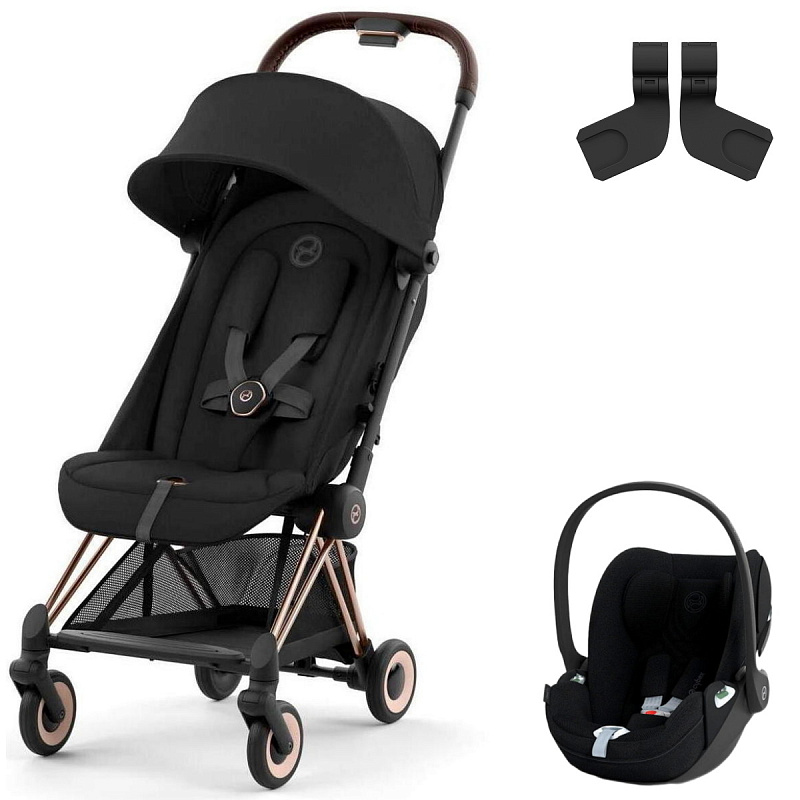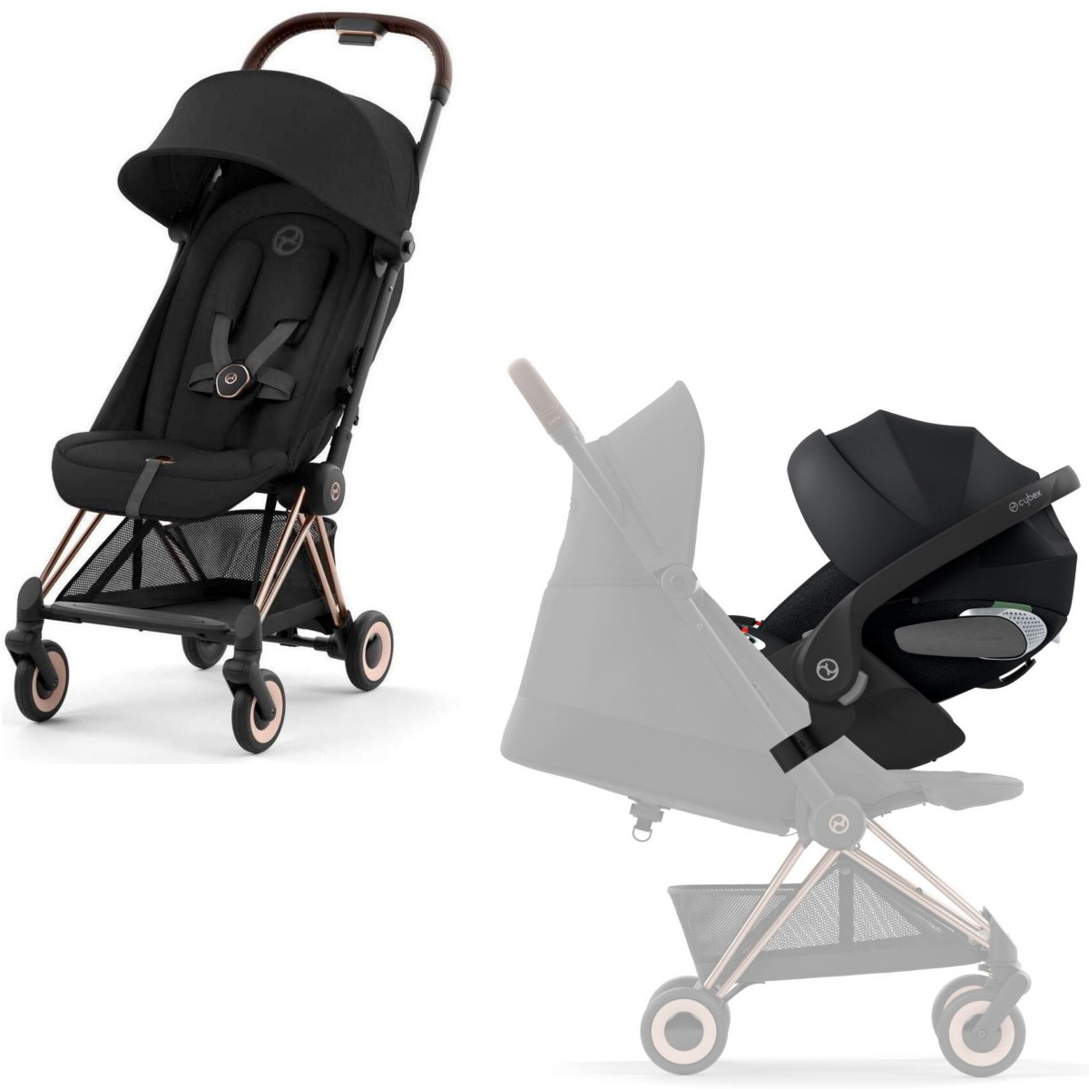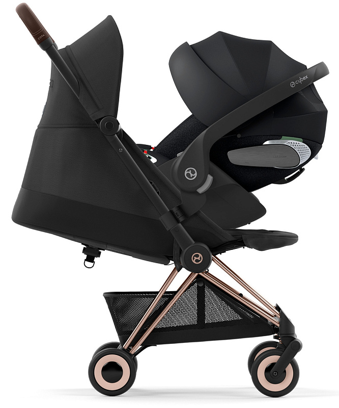 Коляска Cybex Coya Rosegold Frame Cloud T i-Size Sepia Black Plus Sepia Black с дождевиком и бампером