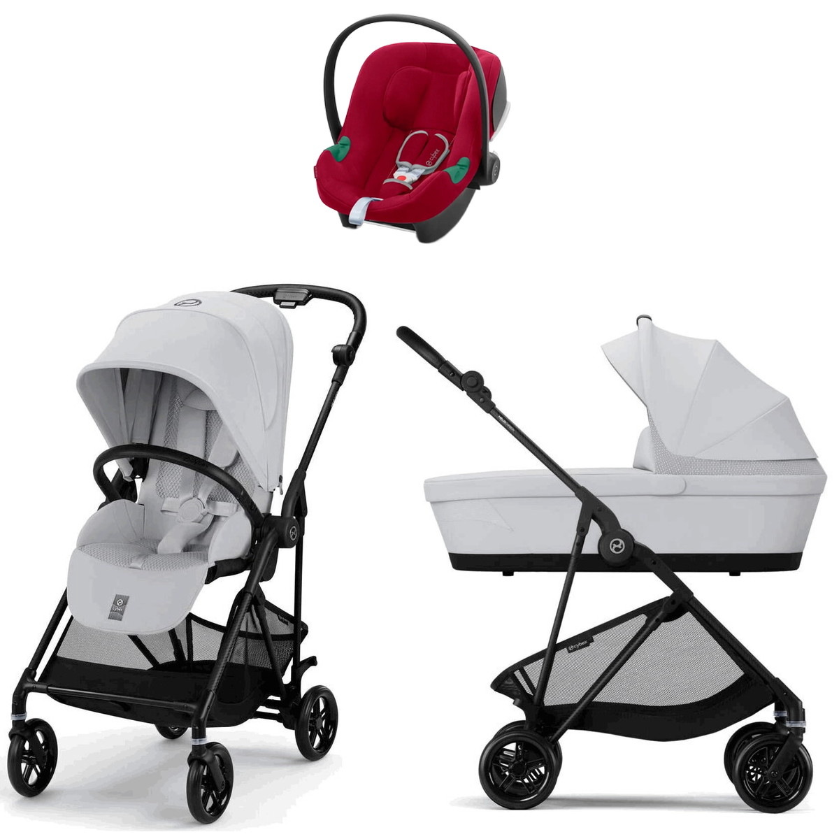 Коляска Cybex Melio Carbon Aton B2 i-Size Dynamic Red 3 в 1 Fog Grey с дождевиком