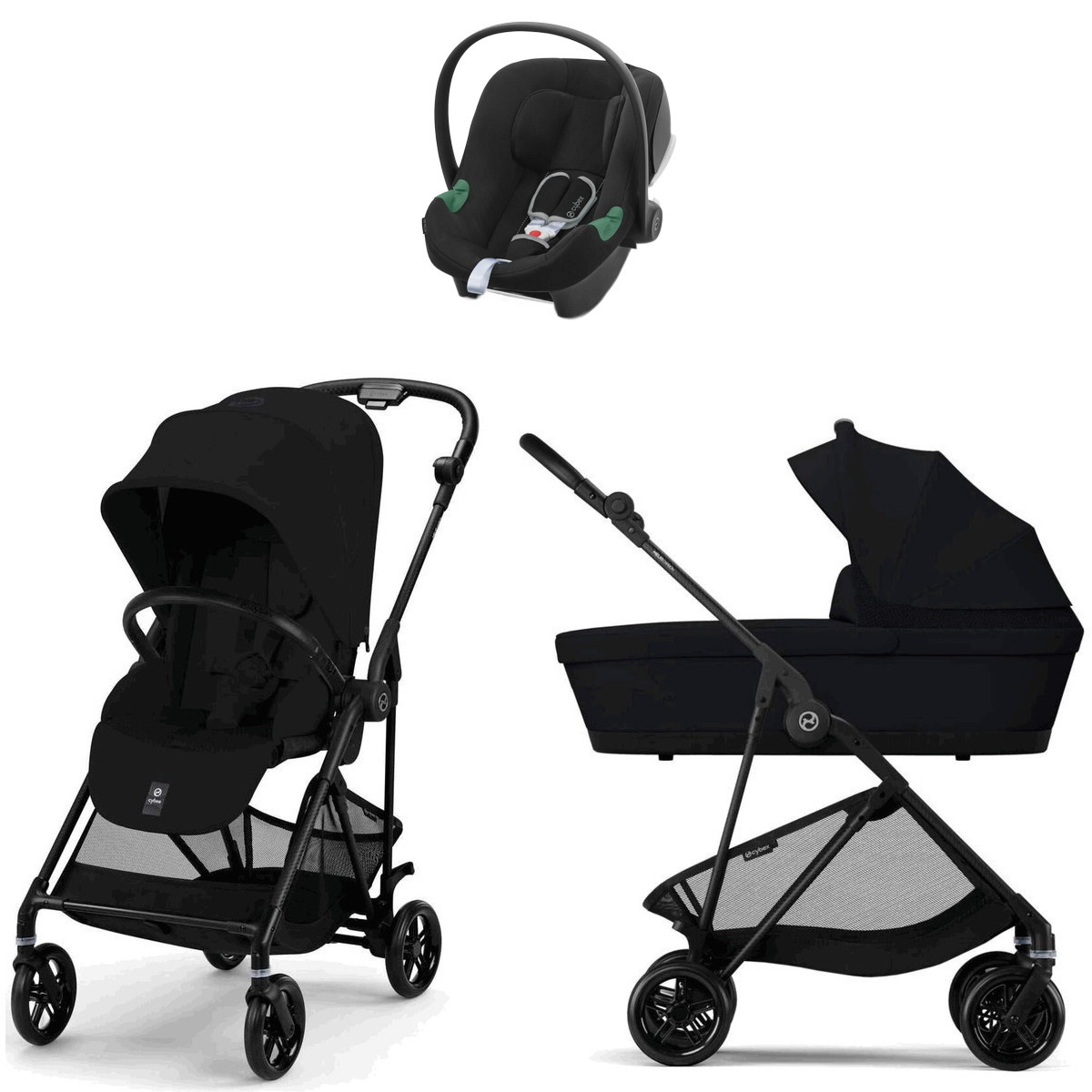 Коляска Cybex Melio Carbon Aton B2 i-Size Volcano Black 3 в 1 Magic Black с дождевиками