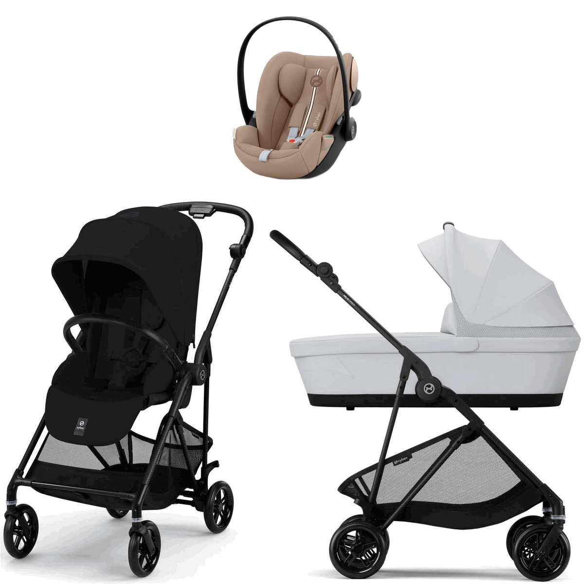 Коляска Cybex Melio Carbon Cloud G i-Size Almond Beige Plus 3 в 1 Magic Black с дождевиком/Fog Grey