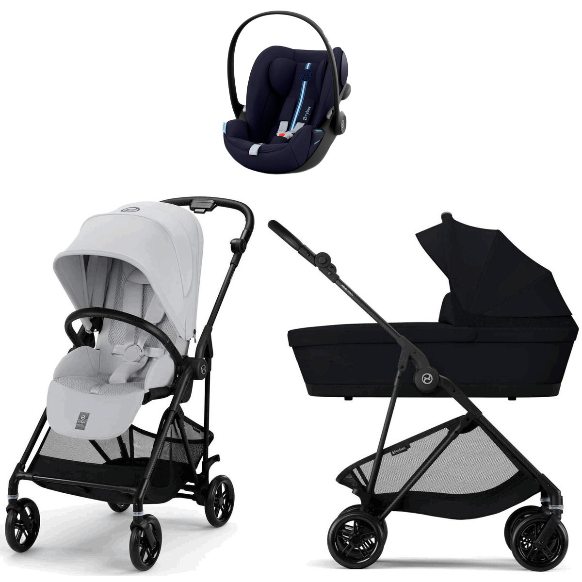 Коляска Cybex Melio Carbon Cloud G i-Size Ocean Blue Plus 3 в 1 Fog Grey/Magic Black с дождевиками
