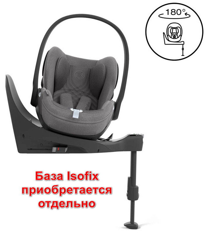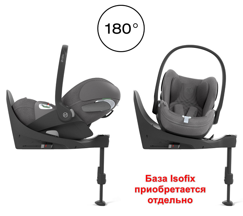Установка автокресла Cybex Cloud T i-Size на базу Isofix (приобретается отдельно) обеспечивает дополнительную стабильность и безопасность. База позволяет повернуть кресло на 90 градусов, чтобы удобно посадить малыша в автомобиль, лицом к двери. Это значительно облегчает процесс установки и снятия ребенка из автокресла.