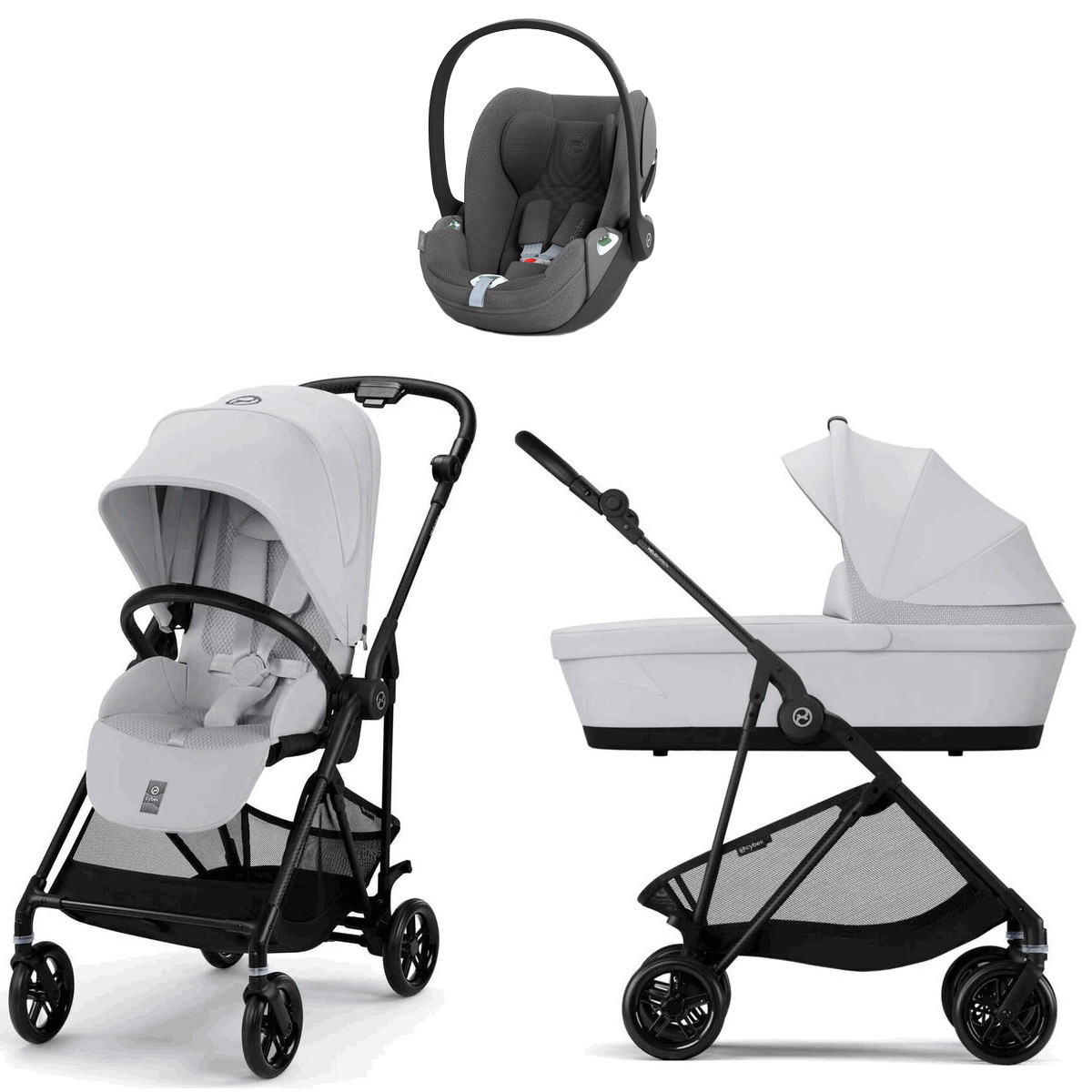 Коляска Cybex Melio Carbon Cloud T i-Size Mirage Grey Plus 3 в 1 Fog Grey с дождевиком