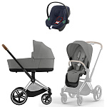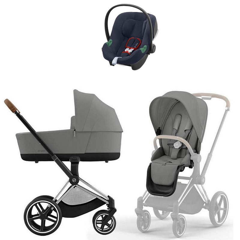 Коляска Cybex Priam IV Chrome Brown complete Aton B2 Bay Blue Base One 3 в 1 Mirage Grey