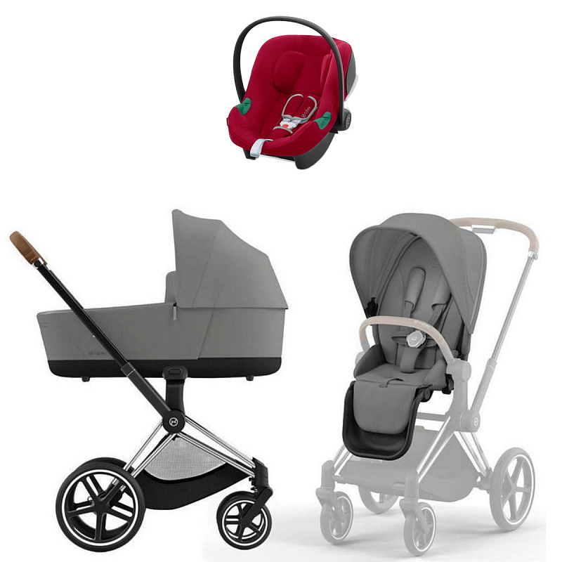 Коляска Cybex Priam IV Chrome Brown complete Aton B2 Dynamic Red Base One 3 в 1 Mirage Grey
