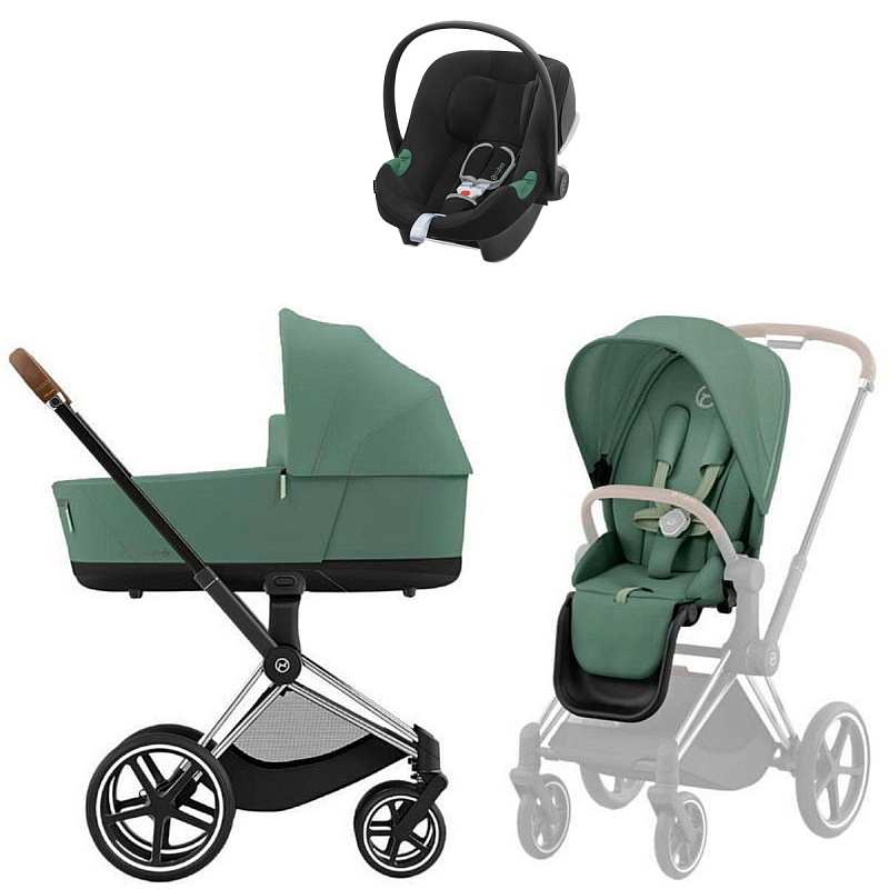 Коляска Cybex Priam IV Chrome Brown complete Aton B2 Volcano Black Base One 3 в 1 Leaf GreenНет оценокХарактеристики