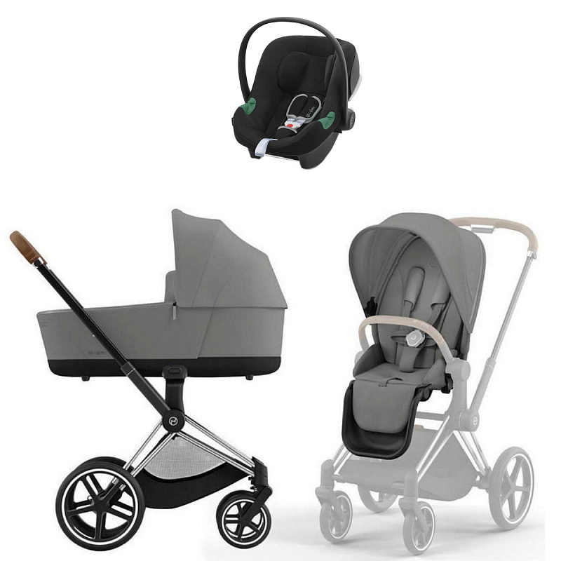 Коляска Cybex Priam IV Chrome Brown complete Aton B2 Volcano Black Base One 3 в 1 Mirage GreyНет оценокХарактеристики