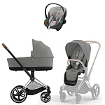 Коляска Cybex Priam IV Chrome Brown complete Aton S2 Lava Grey Base One 3 в 1 Mirage Grey