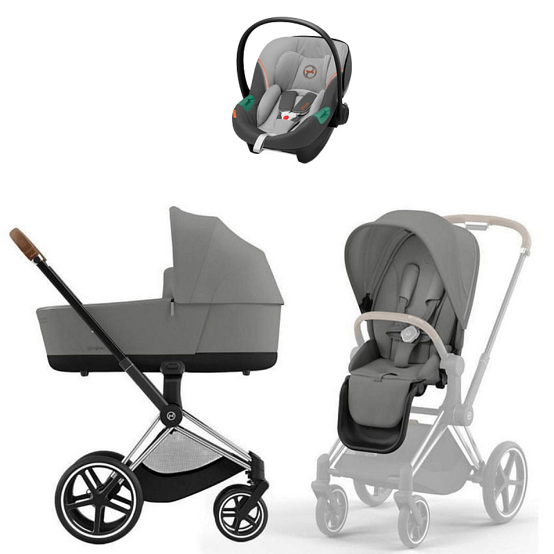 Коляска Cybex Priam IV Chrome Brown complete Aton S2 Lava Grey Base One 3 в 1 Mirage GreyНет оценокХарактеристики