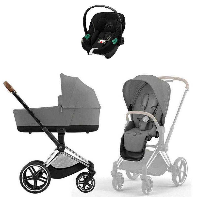 Коляска Cybex Priam IV Chrome Brown complete Aton S2 Moon Black Base One 3 в 1 Mirage Grey
