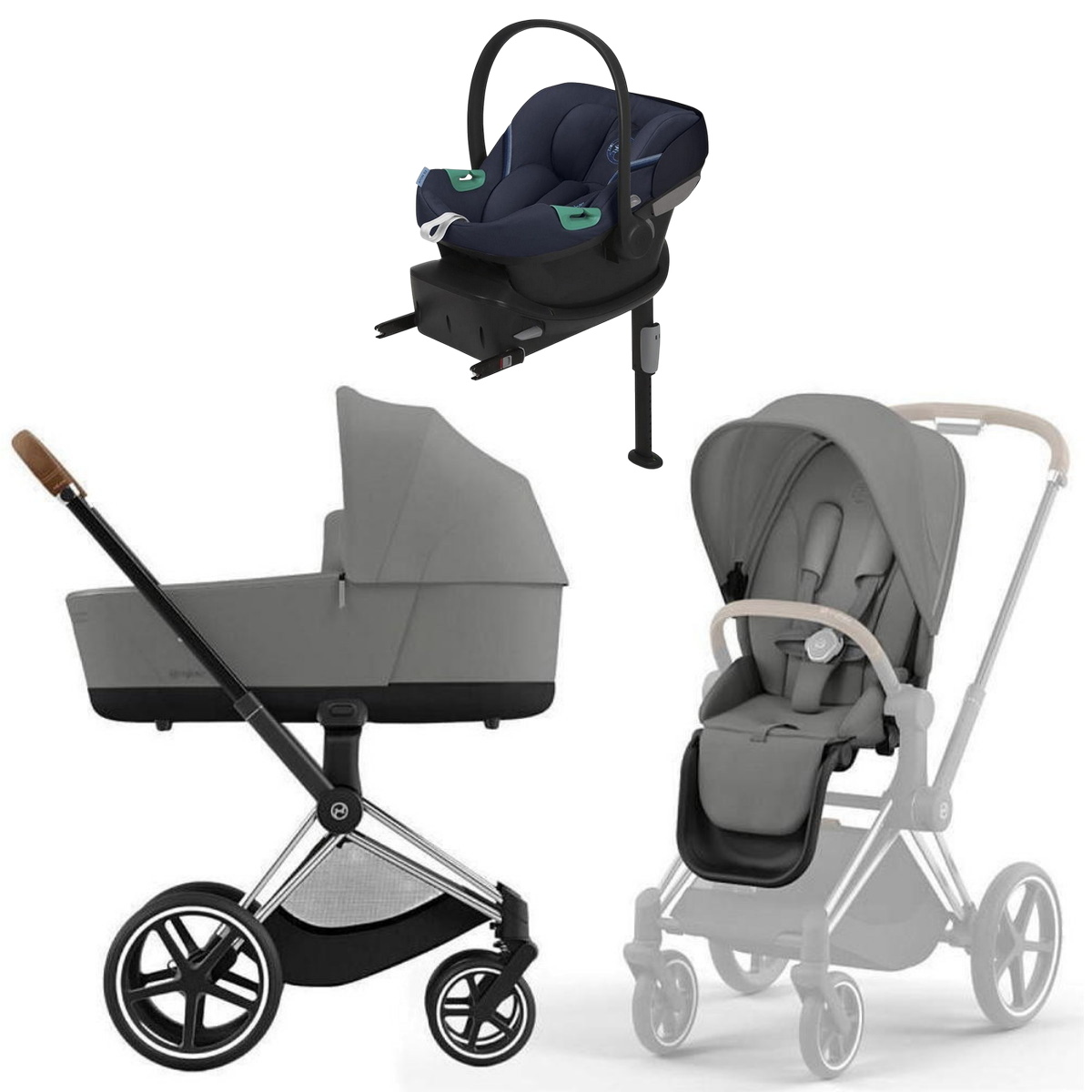 Коляска Cybex Priam IV Chrome Brown complete Aton S2 Ocean Blue Base One 3 в 1 Mirage Grey