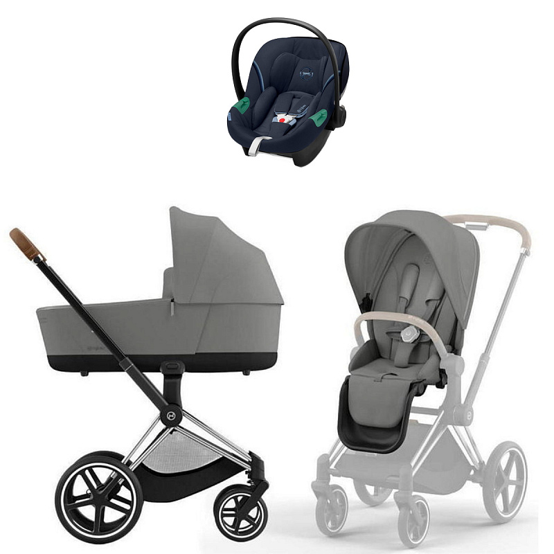 Коляска Cybex Priam IV Chrome Brown complete Aton S2 Ocean Blue Base One 3 в 1 Mirage GreyНет оценокХарактеристики