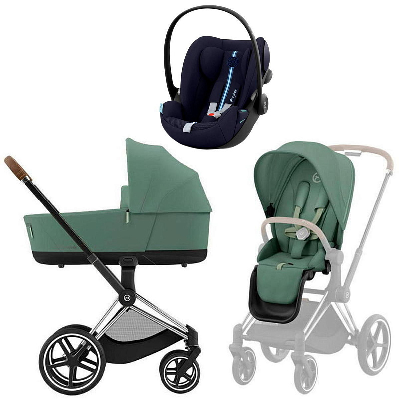 Коляска Cybex Priam IV Chrome Brown complete Cloud G Ocean Blue Plus Base G 3 в 1 Leaf Green