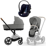 Коляска Cybex Priam IV Chrome Brown complete Cloud G Ocean Blue Plus Base G 3 в 1 Mirage Grey