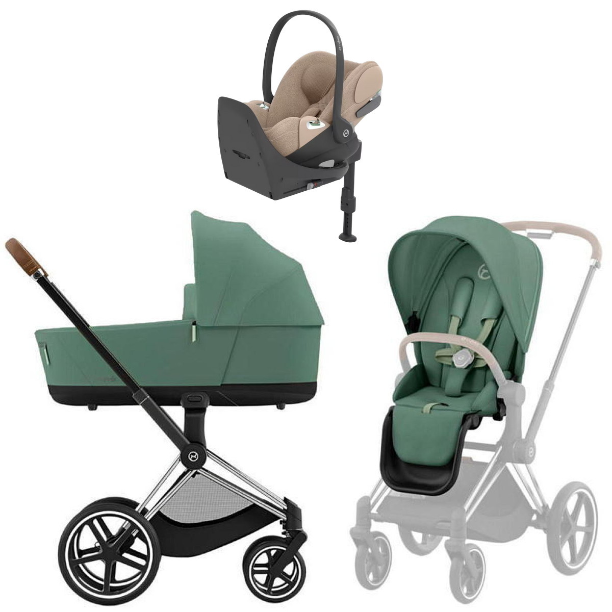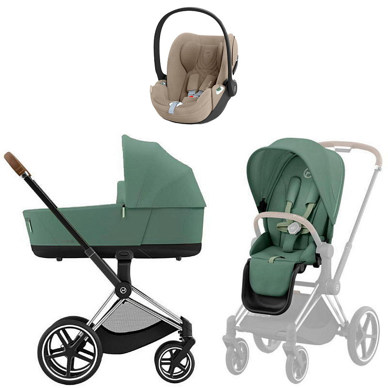 Коляска Cybex Priam IV Chrome Brown complete Cloud T Cozy Beige Plus Base T 3 в 1 Leaf Green