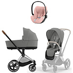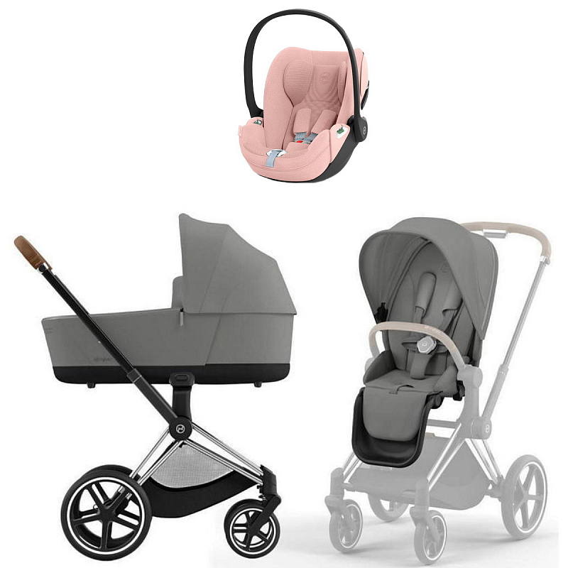 Коляска Cybex Priam IV Chrome Brown complete Cloud T Peach Pink Plus Base T 3 в 1 Mirage Grey