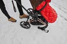 Безопасность вашего малыша обеспечивается пятиточечным ремнем безопасности и регулируемой подножкой с тремя положениями. Каркас коляски выполнен из высококачественного и прочного, но легкого алюминия, обеспечивая стабильность и прочность. Благодаря небольшой ширине шасси, коляска легко проходит через любые дверные проемы и помещается в лифт. Кроме того, шасси компактно складывается и имеет двухколесный режим, что позволяет преодолевать препятствия с легкостью. Передние колеса поворачиваются на 360 градусов, придавая коляске Priam невероятную маневренность. Сайбекс Приам 4 имеет очень большую корзину для покупок, выдерживающий вес до 5 кг. Вместительная корзина для покупок раскладывается, когда вам нужно больше места во время поездки или похода по магазинам.