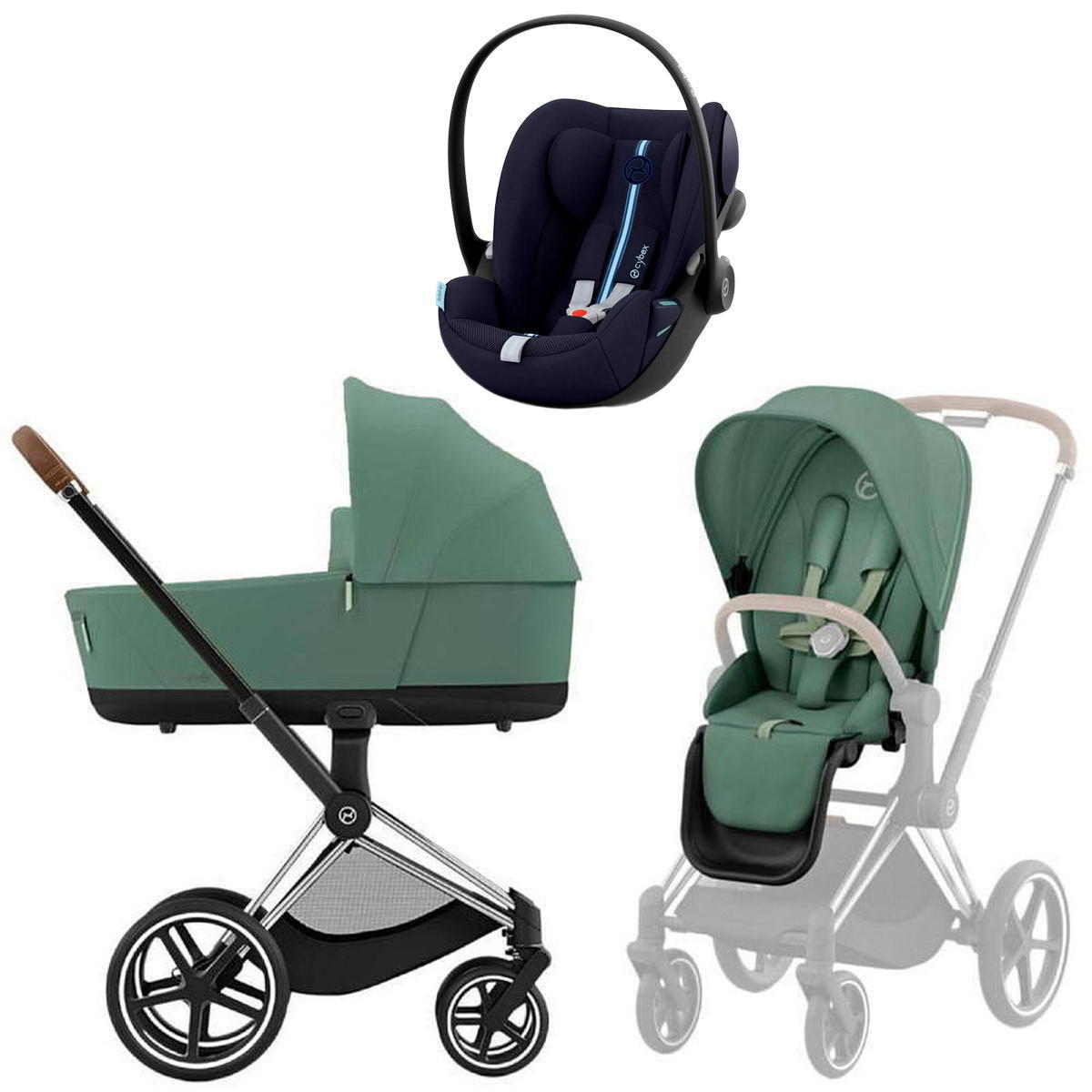 Коляска Cybex Priam IV Chrome Brown complete и автокресло Cloud G i-Size Ocean Blue Plus 3 в 1 Leaf Green