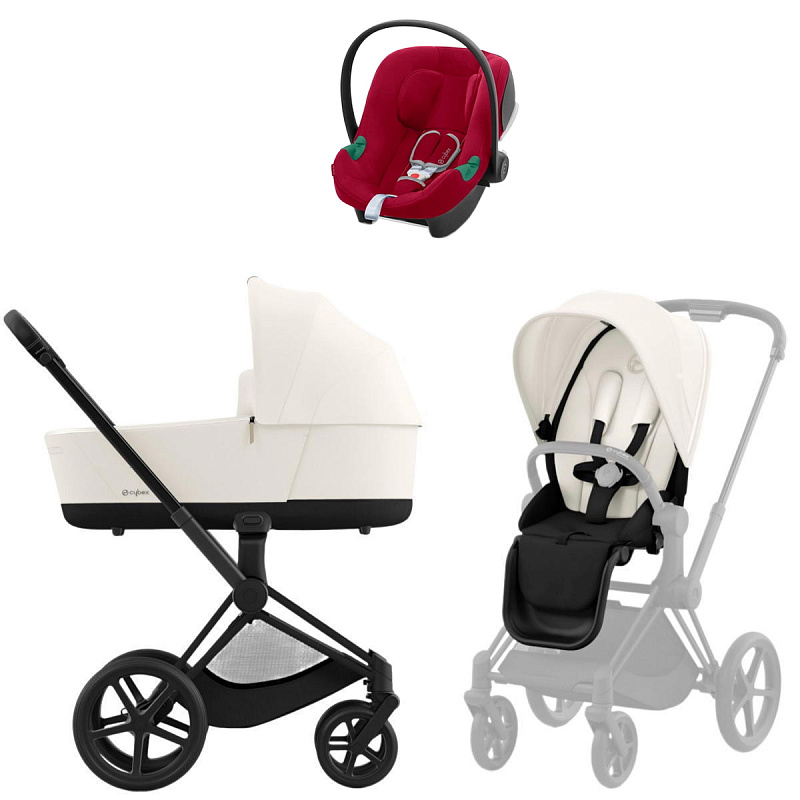 Коляска Cybex Priam IV Matt Black complete Aton B2 Dynamic Red Base One 3 в 1 Off White