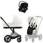 Коляска Cybex Priam IV Matt Black complete Aton S2 Moon Black Base One 4 в 1 Off White